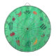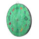 Painting of various fruits and vegetables, on a background of blended green, printed on dart boards. Produce includes spinach, oranges, blueberries, cucumbers, cherries, bananas, string beans, carrots, tomatoes, asparagus, beet, and sweet potatoes.