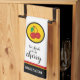 Who doesn't love a kitchen pun? Cute, illustrated red cherries inside a yellow circle/black outline with funny/punny "Eat, drink and be cherry." below it in a black, script font. At the very bottom customise with "name's kitchen." Easily change colours to match your kitchen if you like.