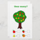 How many of each fruit are in the tree? Write the number inside the block next to the fruit. This is a counting activity for children to test their math skills. Use this worksheet in your classroom or at home.