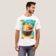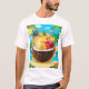This vibrant t-shirt features a tropical-inspired design with crispy, golden fries nestled inside a fresh coconut. The playful illustration evokes a laid-back, island vibe, set against a pleasant beach scene. The background shows soft waves gently lapping the shore, palm trees swaying in the breeze, and a clear, sunny sky overhead. The combination of the warm, savory fries and the serene, picturesque setting creates a fun, relaxed mood—perfect for summer days or anytime you want to feel a little closer to paradise. The design is both unique and fun, blending comfort with a hint of tropical adventure.