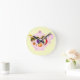 Fruit & Leaves Pink China Teapot Round Wall Clock