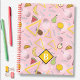 Personalise this colourful abstract memphis patterned notebook with a monogram for a stylish back to school gift. Designed with a fruit and memphis style graphics print on a pastel pink. Choose your paper style and also colour of the spiral binding to customise it even further, See other other colour choices and coordinating items in this design collection at KidsUnique on Zazzle.