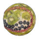 This is a close-up photo of a delicious and colourful fruit pizza which my sister made in the shape of an Easter egg for a family gathering. Featuring blueberries, kiwi slices and a few small strawberry slices.