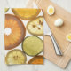 Slices of oranges, limes, lemons decorate this natural cutting board.