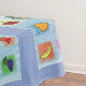 This design is of different types of fruit, sketched on a blue background and each fruit is on a coloured backdrop. This image is available on a variety of other products, just click the link below the photo near 'About this Design'.