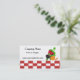 Envision a fresh, chic design showcasing a succulent strawberry, lush blackberries, and a vibrant orange. It's framed by a red and white chequered border at the card's base. Personalise it with your details as you wish.