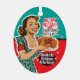 Fruitcake Lady Ornament features a 1950s housewife offering a Liquor Soaked Christmas Fruitcake filled with nuts... See all our retro Christmas ornaments in our collection too. An original collage illustration by Diane Dempsey.