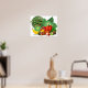 Standard size poster, photo realistic 3D respresentation of fruit and vegetables: banana, watermelon, cabbages, bell pepper, tomato, strawberry, kiwi, carrots, mango, ....