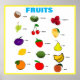 A chart with fruits pictures and names suitable for classroom display. Teach children at home or at school.