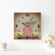 Fruits cocktail strawberry apple lemon lime retro square wall clock