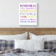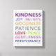 The Fruits of the Spirit. Beautifully colourful, fun, and inspiring words. Bold and bright. Traits to live by everyday of your life.