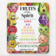 Fruits of the Spirit, this Christian design features a colourful display of cute fruits with smiling faces and a bible verse for "Fruits of the spirit".