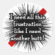 Slightly frazzled text says 'I need all this frustration like I need another butt!' emphasized by a spiky background. Need relief from one of 'those' days? Laugh a little with this Frustration design!