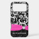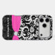 Elegant Personalised with your name or anything you want Fuchsia, White and Black iphone Vintage Damask Elegant case - Faux Diamond - Printed Image - not an attached rhinestone - this is a printed rhinestone - the Black on the top can be changed to any colour by clicking customise and then edit. Use the last tool on the drop down menu to choose from the colour swatches shown or enter your RGB Hex code for a custom colour and a one of a kind case.