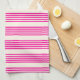 Fuchsia and beige five stripes pattern tea towel