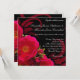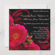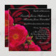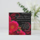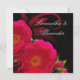 Square wedding invitation, other sizes available. Elegant and rich bright fuchsia magenta red rose image with handsome swirls on black background. Perfect for a wedding with sophistication, class and grace. Features close-up of a picturesque red fuchsia magenta garden knockout shrub rose (kordes robusta or john cabot or knock out roses) flower bunch contrasting against a black bacground with graphic swirls.