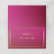 Make a bold statement at your wedding reception with this fuchsia and gold place card. The vibrant pink backdrop paired with a classic gold border adds a modern yet refined touch to your table settings. Personalise effortlessly with guest names and table numbers.