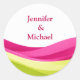 Fuchsia and Lime Green Personalized Wedding Classic Round Sticker