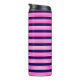 Fuchsia and white five stripes pattern with blue thermal tumbler