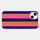 Fuchsia and yellow stripes with navy blue iPhone case