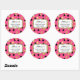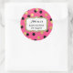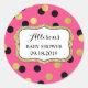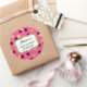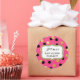 Baby Shower favour tag stickers in fuchsia hot pink with black and gold confetti, please note glitter is photographic effect only. A great way to decorate baby shower favours.