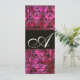 FUCHSIA BLACK SILK DAMASK CLOTH MONOGRAM ,White Invitation