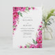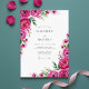A vibrant watercolor design features lush fuchsia blossoms and delicate green foliage cascading across the corners. The rich, artistic blooms create a romantic and whimsical atmosphere, perfect for a beautiful occasion.