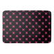 Fuchsia cross stitches on black bath mat