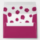 Expectations met; I liked that I had the opportunity to include our address on the back of the envelope. This color matched very well with my save the date. The color was the same as shown above. I had our address labeled on the back of the envelope and the font/printing met my expectations.