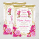 Fuchsia Flowers Quinceañera 15 Anos Birthday invitation