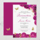 Fuchsia Hot Pink Gold Floral Butterfly Quinceañera Invitation