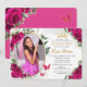 Fuchsia Hot Pink Roses Floral Quinceañera Photo Invitation