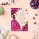 Personalise this boho chic vibrant fuchsia / hot pink floral Quinceañera / Sweet 16 birthday acrylic invitation easily and quickly. Simply click the customise it further button to edit the texts, change fonts and fonts colours. Featuring fuchsia roses, butterflies and a girl dressed in a glittery fuchsia ball gown. Matching items available in store. (c) Somerset Fine Paperie
