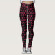 Cute lip print leggings feature an allover pattern of bright fuchsia pink kisses on a black background.