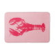 Bath mat in a digital sketch of a Lobster in deep fuchsia pink on a pastel coral pink background