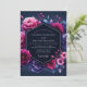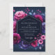 A dramatic and romantic floral design sets a moody, elegant tone. Luminous magenta and deep purple peonies burst with color against a dark, inky background. This opulent arrangement, featuring lush blossoms and delicate berries, evokes the beauty of a midnight botanical display.