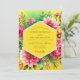 Immerse your union in a burst of vibrant color with this artistic design. A lush arrangement of painterly fuchsia dahlias and verdant tropical foliage creates a striking display. The background is a soft watercolor wash of sunny yellow and green, evoking a cheerful and summery atmosphere for your special day.
