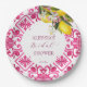 Fuchsia Majolica magenta tiles with bunch of lemons bridal shower tableware personalised party plates.