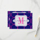 Fuchsia Pink and Navy Blue Modern Wedding Invitation RSVP Card with Monogram Initial and bold circle pattern. Customise with your information and colour choices. You can change the background colour of the circles in the pattern by using the edit menu and changing the colour of the background. Elke Clarke©
