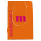 Fuchsia & orange custom initial name modern medium gift bag
