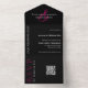 Elegance meets convenience with this Modern All In One Wedding Invitation, featuring a sleek Black and White design with Fuchsia Orchids. This all-in-one design includes a customisable QR code for online RSVP's. Simplify your wedding preparations while making a lasting impression on your guests. Embrace modern romance with this modern all in one invitation.