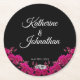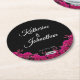 Fuchsia Orchids on Black-Wedding- Round Paper Coaster