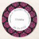 Fuchsia pink and black damask wedding round paper coaster