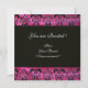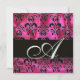 FUCHSIA PINK BLACK DAMASK CLOTH MONOGRAM ,Gold Invitation