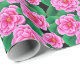 Fuchsia Pink Camellias and Jade Green Leaves Wrapping Paper