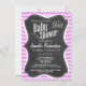 Fuchsia Pink Chevron Stripes; Chalkboard look Invitation
