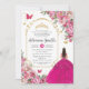 Fuchsia Pink Floral Gold Quinceañera Sweet 16 XV Invitation