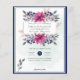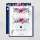 Beautiful elegant fuchsia pink, navy blue floral wedding invitations.