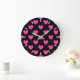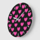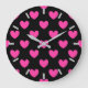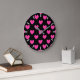 Fuchsia pink polka hearts on black large clock