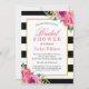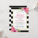 Fuchsia Purple Red Floral Stripes Bridal Shower Invitation